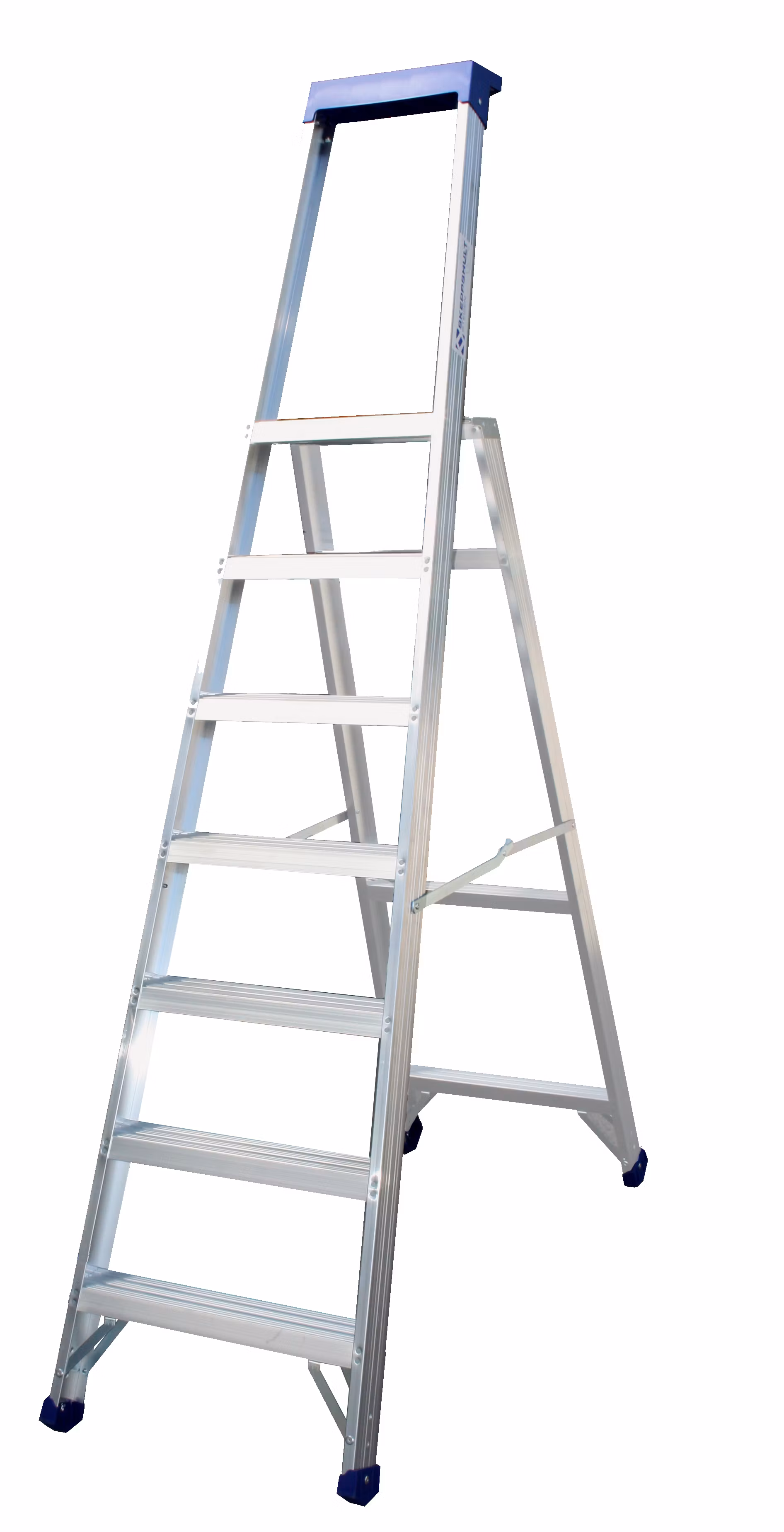 En stabil och robust trappstege i aluminium som tål tuff användning. Stege 5050 har hydraulnitade steg och en stabil plattform.